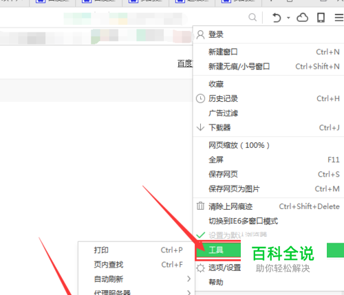 在下拉菜单中找到“工具”,里面有一个Internet选项。
