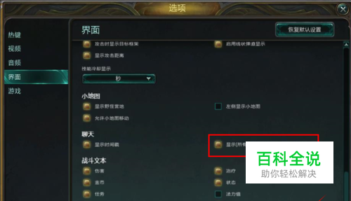 进入界面后,请大家将鼠标往下拉,这个时候会发现所有人频道的聊天信息,勾选以后点击确认即可;