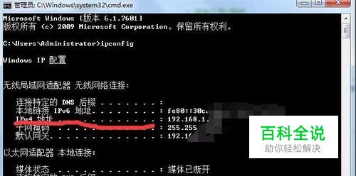 在弹出来的对话框里输入ipconfig就会看到我们电脑的ip地址了
