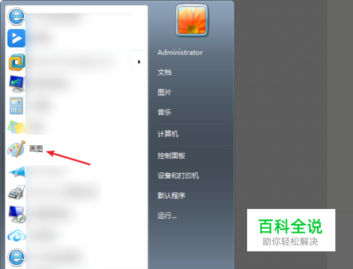 点击开始菜单然后找到画图工具打开,打开工具后点击左上角的三然后选择打开。