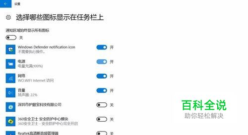 可以看到上面有很多可以控制显示的选项,我们拉到底,找到“选择哪些图标显示在任务栏上的选项”