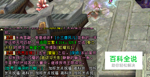进入《天龙八部》游戏后,我们经常在左下的对话框里看到信息,也在左下的对话框里发出我们的信息。