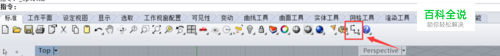 在上图的尺寸标注中,我们可以看出它标注的数字过大,精度过高,我将对其进行调整。点击如下图所示的,犀牛标准栏横向栏中的红色箭头所指引的图标。
