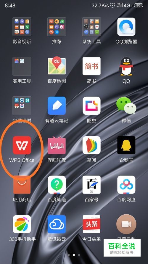 在手机上找到手机 WPS 2019,更新到最新版本,点击打开