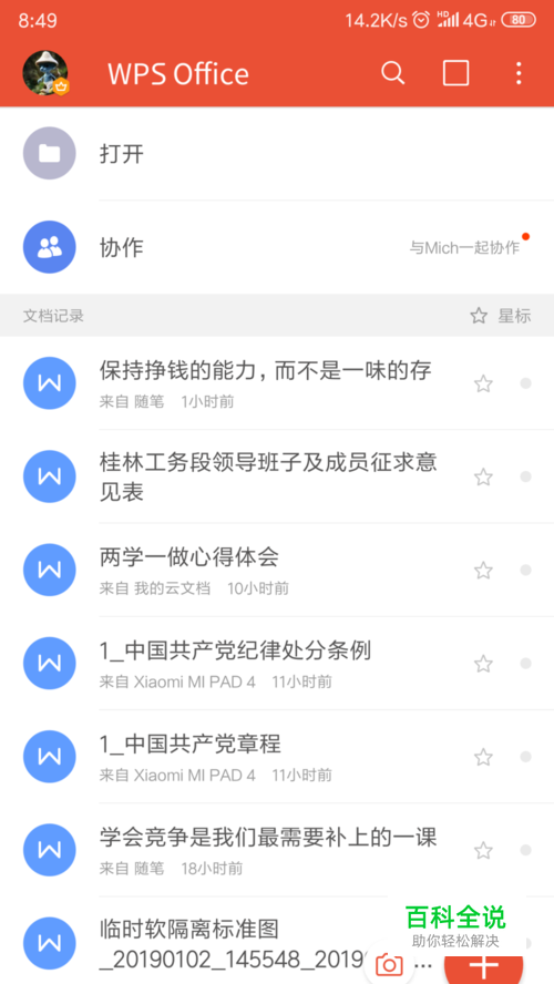 在主页面找到需要处理的文档,点击打开