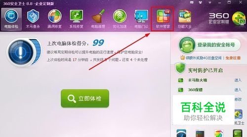 首先我们打开360安全卫士,选择软件管家的选项;