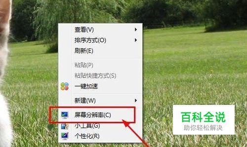 右键单击电脑桌面,然后在出现的菜单里找到”屏幕分辨率“左键单击。