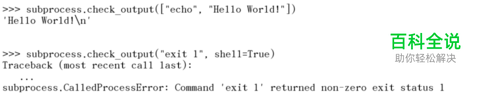 直接调用命令,返回值即是系统返回。shell=True表示命令最终在shell中运行。Python文档中出于安全考虑,不建议使用shell=True。建议使用Python库来代替shell命令,或使用pipe的一些功能做一些转义。官方的出发点是好的,不过真心麻烦了很多, so.... 如果你更关注命令的终端输出,可以如下图这样操作, 同样很简单.