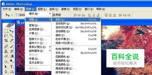 接着也可以用【自动色阶】进行调整,鼠标左键单击【图像】>>【调整】>>【自动色阶】,如下图所示。