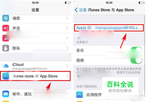 进入Iphone6plus上的“设置”,然后找到【iTunes Store与App Store】,点击已经登陆的“Apple ID”。
