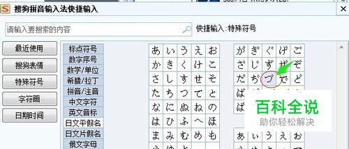 1.搜狗拼音输入法,按搜狗快捷输入组合键Shift+Ctrl+Z键,打开快捷输入,选‘日文平假名’,就可以打出来这个符号。づ