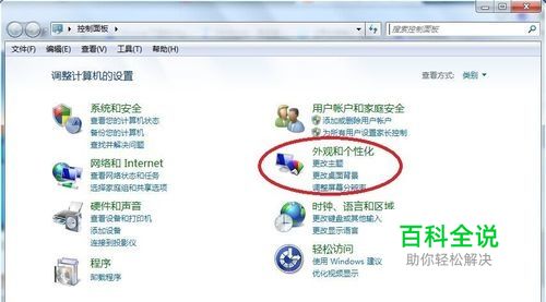 1、首先在电脑上打开【控制面板】选项,可通过左下角的开始菜单进入控制面板选项,在控制面板界面可以看到【外观和个性化】选项,如下图所示。