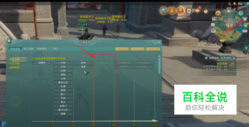 点击右上角小地图上的江湖百科图标,打开“江湖百科”。点击百科左边的“升级历程”,可以看到30级以下可以在门派进行升级,30-95级,则可以到浮丘岛去升级。