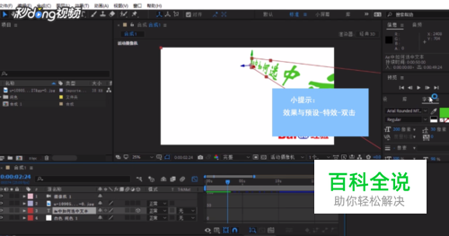 选中合成面板,选择一个图层,找到屏幕右侧的“效果与预设”面板,选择需要的特效,双击进行添加。