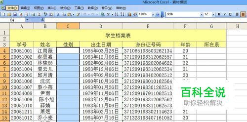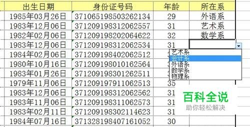 表格的后面系别也空着,我们呢,可以用同样的方法。选择系别这列