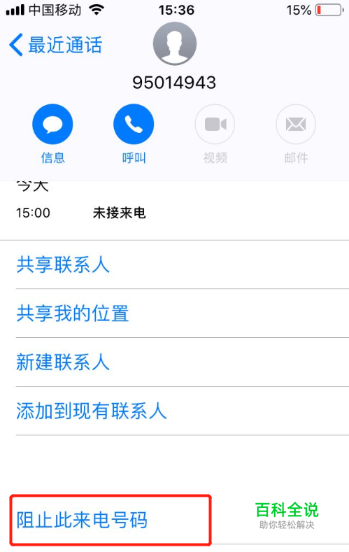 点击“阻止此来电号码”,如图: