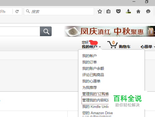 登录亚马逊后,选择 我的账户-查看 我的内容与设备