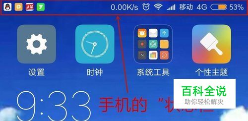 当”显示实时网速“打开时,状态栏出现网速标志。