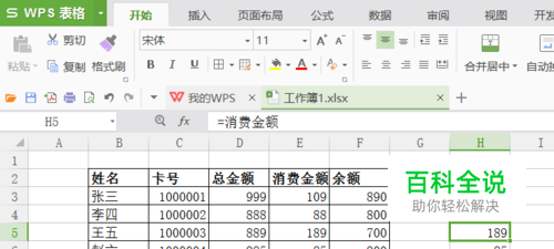 根据wps表格的提示后,我们只需要按下回车键,这样就引入了对应的消费金额,如下图所示。