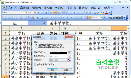 列表区域就是我们整张数据表,重点是条件区域,我们要选择我们提前录入好的筛选数据。