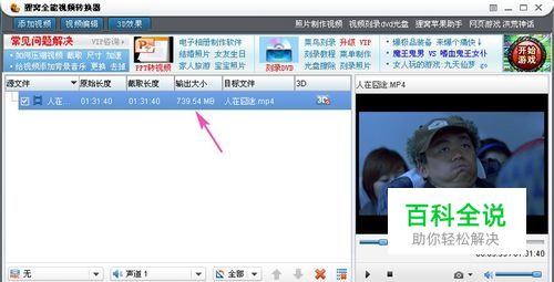 【调整视频文件比特率】我们先试着选择比特率1000,然后确定回到视频压缩软件主界面“输出大小”是多少?我们现在看到的输出大小是739.54mb,如果觉得大,可以再测试调整。