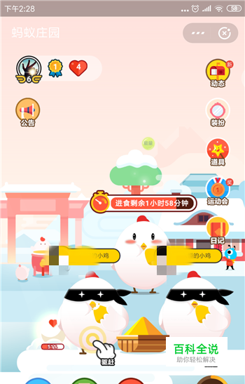 在支付宝的蚂蚁庄园中总是会发现有别人的小鸡来偷吃我们的饲料,这也导致了我们小鸡下单的速度变慢,那么怎么不让别人小鸡偷吃饲料呢?