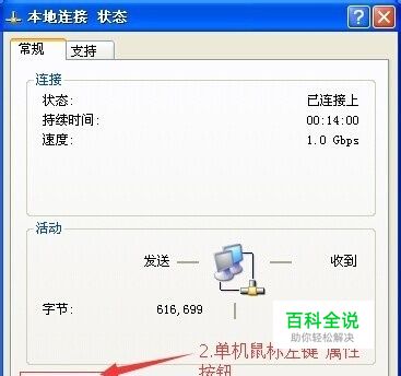2.“本地连接 状态”页面选择“属性”单击鼠标左键,进入下一步