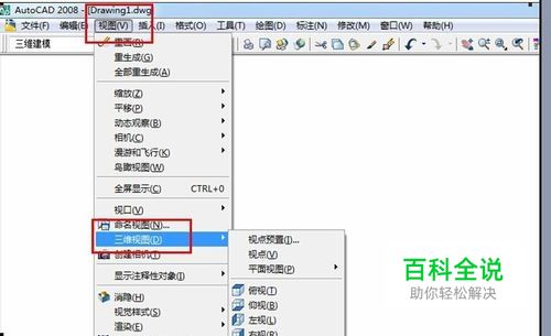 我们首先打开CAD,点击视图→三维视图→西南等轴测