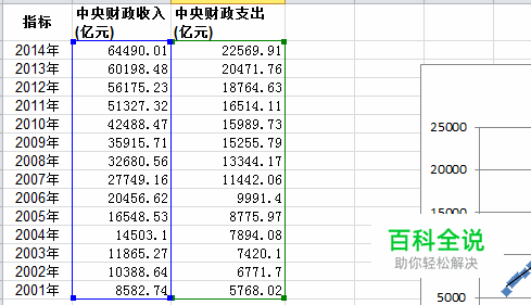 既然是查看相关系数,就需要有两个呈线性相关关系的数据系列,这里小编已经准备好了一组关于收入和支出的数据