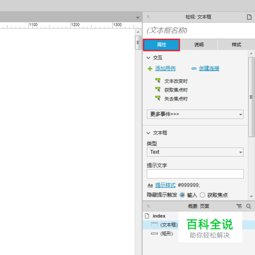 鼠标选中拖入的文本框,然后在右侧“检视:文本框”中选中“属性导航栏”;