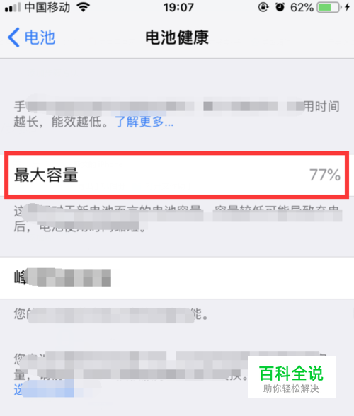 3.点进去之后会看到电池目前的最大容量,一般情况最大容量低于80%就可以考虑更换电池了!