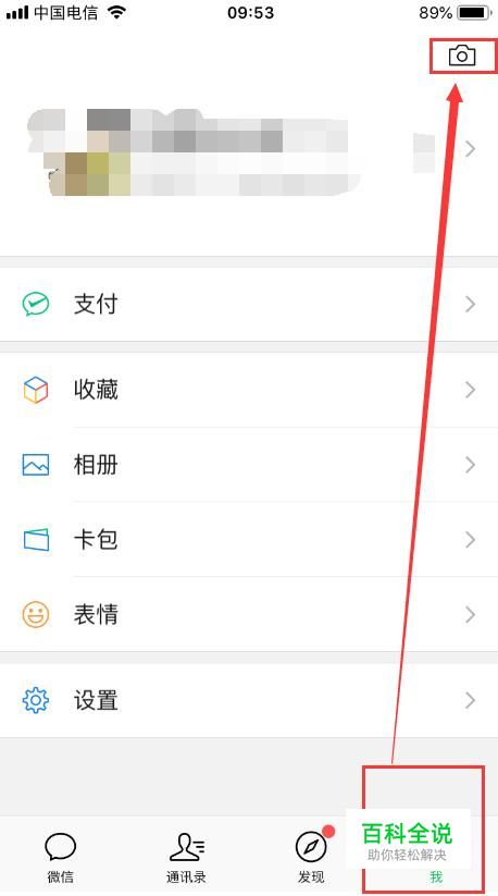 进入微信后,点击右下角“我”,再选择右上角相机按钮。