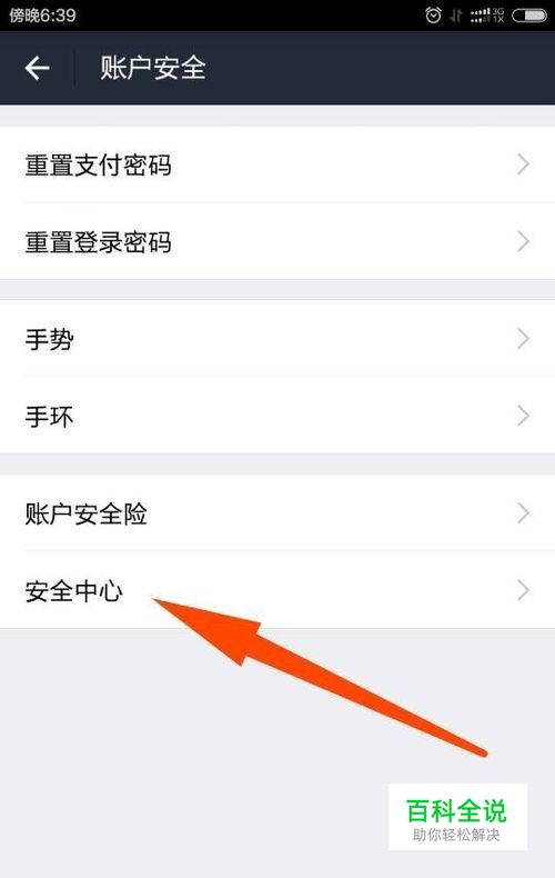 在帐户安全列表中,选择——安全中心,进入