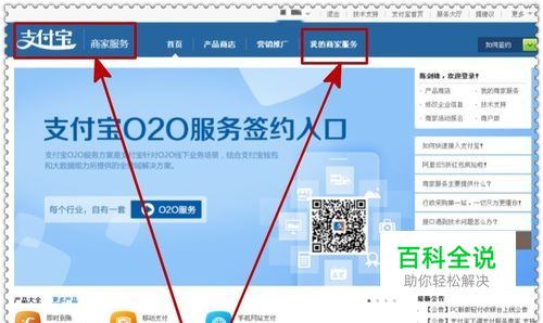 登陆支付宝帐号,进入商家服务页面;然后在菜单上端找到"我的商家服务“按钮,点击打开进入下步操作,如下图示。