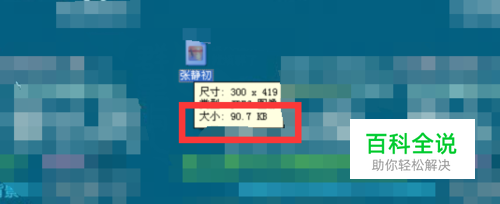 首先我们找到要用的图片电子档,单击它就可以看到图片内存大小;现在可以看到小编的图片大小是90.7KB;