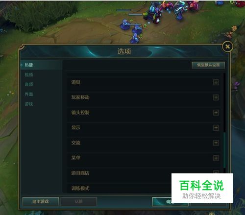 点击打开“交流“菜单后,就会看到我们要的“眼位信号功能”,如图红圈处,这里默认是没有按键的,也就是关闭的。我们就在这里设置一个键位给它,我用的是V键,V键平时是撤退信号,因为本人用的少,就用V键来用吧。