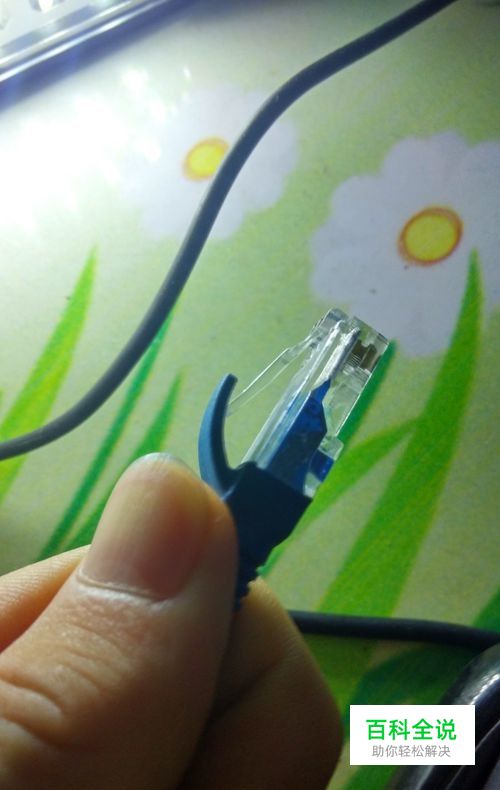 然后再按住网线插口处的卡扣,轻轻一拉就可以把网线从插口中拔出了。