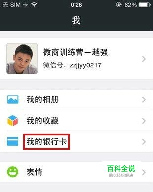 登陆个人微信号界面,点击右下角“我”,再点击手机屏幕中间“我的银行卡”