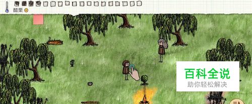 所有物品的制作都是通过合成两个其他物品实现的,左下角的合成书会提示的,使用篮子可以觅食,带着那块锋利的石头,如图所示