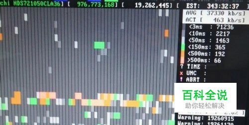 根据硬盘大小和坏道程度,检测时间不同,图示红色框内维坏道情况,一般绿块以上即为坏道