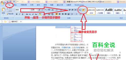 通常情况下分隔符是不显示的,那么如何查看分割符呢? 方法:开始---段落--分隔符显示图标,选中后有高亮显示