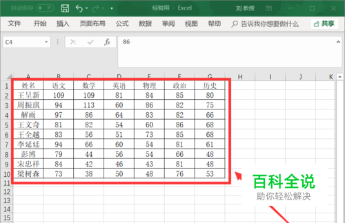 在I2单元格拖动填充柄到I10单元格,完成全部同学总分的排名。