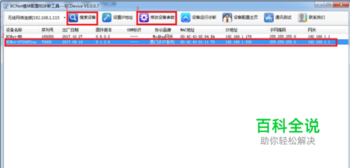 一、配置BCNet模块数据交换命令 1、 打开BCDevice,点击【搜索设备】,搜索到BCNet-S7200Plus后,点击【修改设备参数】;