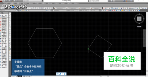 我们使用鼠标框选中需要进行对齐的图形,按下空格键确定,确定对象后,我们需要确定图形的源点。