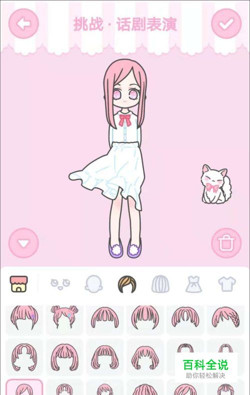 长发发型 清纯女神的标准样貌中,短发显然是不合适的,需要为其选择这个长发发型,位置见下图 白色衣服+长发装扮就可以顺利过关了