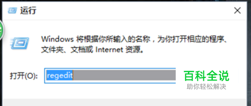 在运行里输入“regedit”,点击回车,打开注册表管理器