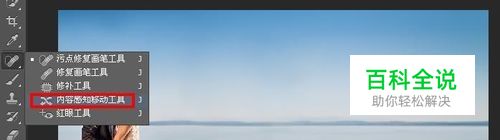 我们可以看到人物在照片的左侧,我们的目的就是要把它移动到右侧。 我们首先点击photoshop左侧工具栏的内容感知移动工具。