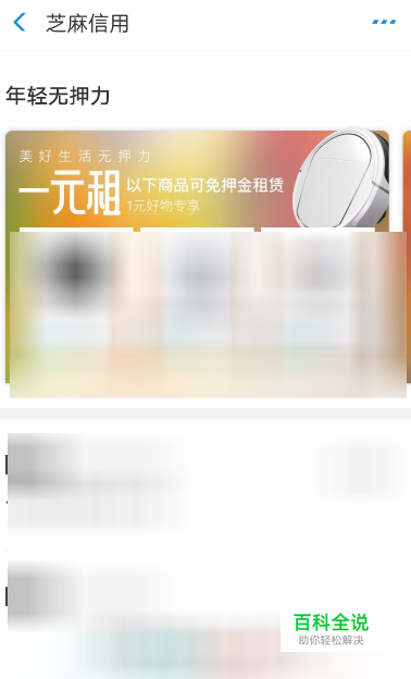 进入芝麻信用页面之后往下滑动,点击如图所示的年轻无押力一元租的活动,进入之后会看到众多的产品,如果没有看到手机就滑到最底下点击查看更多
