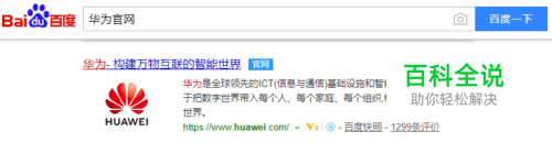 浏览器搜索华为官网(搜索的结果中带有官网两个字的)