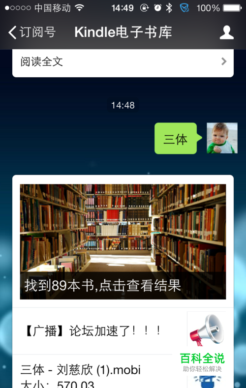 进入微信公众号,输入你想要查询的书籍名字,支持模糊查询功能,小编在这就选最近流行的三体作为查询